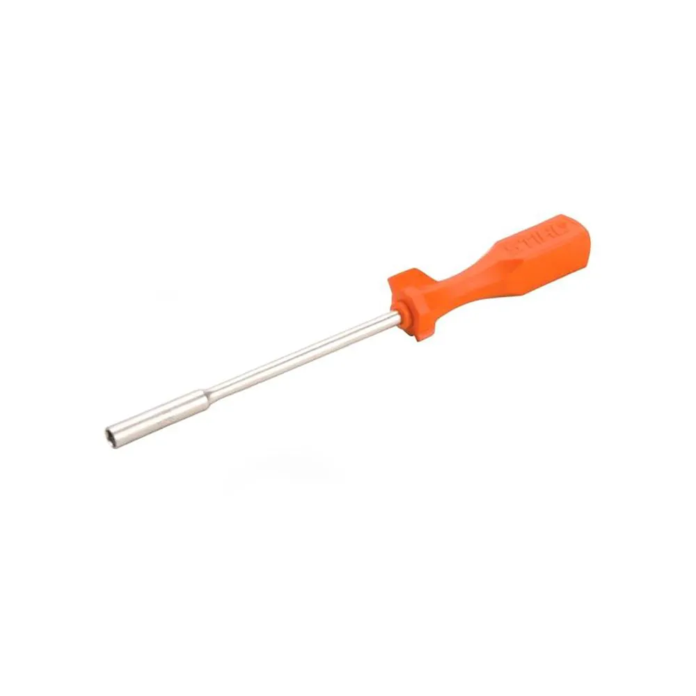 | DESCRIÇÃO Chave Octagonal para Regular Carburador STIHL - Código 5910-890-2314 Esta é uma ferramenta de ajuste especializada e original STIHL, essencial para a manutenção precisa dos carburadores em diversos equipamentos da marca. Descrição Completa do Produto Produto: Chave Octagonal (também referida como Chave Canhão) para Regulagem de Carburadores. Marca: STIHL (Peça Genuína/Original). Código do Fabricante: 5910-890-2314. Função Principal: Permite o ajuste fino dos parafusos de regulagem (geralmente H - Alta e L - Baixa) em carburadores de modelos STIHL que possuem o encaixe especial octogonal (8 estrias). Este tipo de ponta é necessário para acessar os parafusos de regulagem que não utilizam fenda padrão. Formato da Ponta: Octogonal (8 estrias). Aplicação/Compatibilidade: Projetada para uma variedade de máquinas STIHL que utilizam carburadores com este padrão de regulagem. Os modelos compatíveis incluem, mas não se limitam a: Sopradores: BG 56, BG 86 C-E. Aspiradores/Sopradores: SH 56. Roçadeiras: FS 38, FS 55, FS 120. Podadores/Podadoras de Cerca Viva: HS 45, HS 82 R (e outros modelos que utilizam carburadores com esta especificação). Material e Construção: Geralmente construída em aço resistente para garantir durabilidade e precisão no ajuste, podendo apresentar acabamento cromado para proteção contra corrosão. Alguns anúncios mencionam um comprimento aproximado de 158 mm para um manuseio confortável |